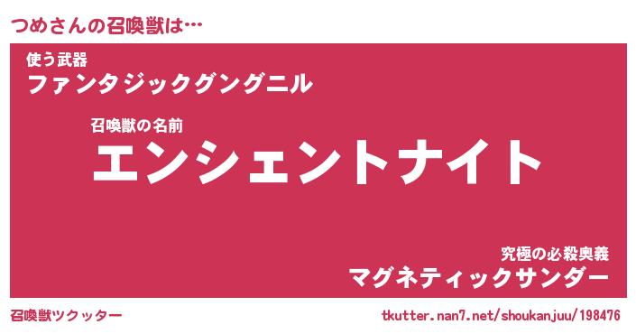 | ファンタジー風あだ名 | 『ツメフェル』『エターナルツメー』 |