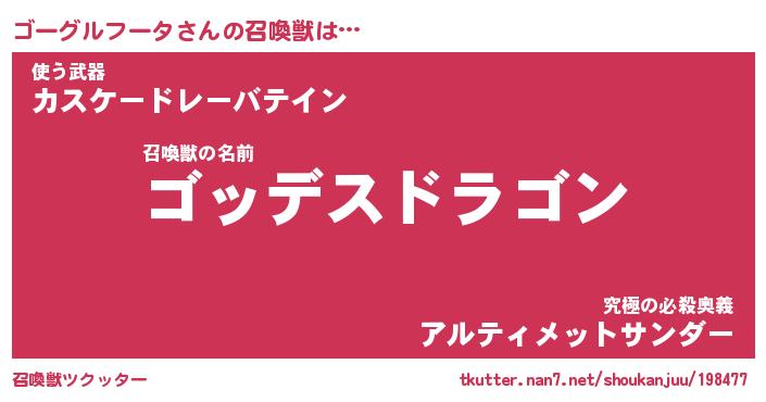 | ツイッター | ゴーグルフータさんのツイッターID『dendenmushi_man』 |