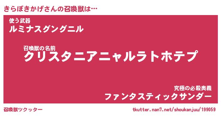 | ツイッター | きらぼきかげさんのツイッターID『dendenmushi_nyan』 |