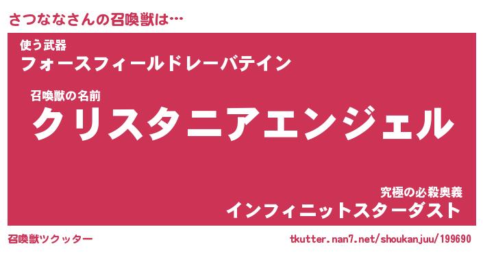| ファンタジー風あだ名 | 『サツフェル』『エターナルサツナナー』 |