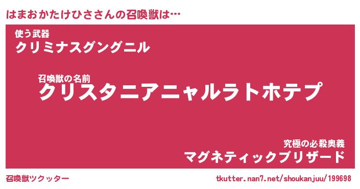 | 肩書あだ名 | 『はまおかたけひさ御曹司』 |