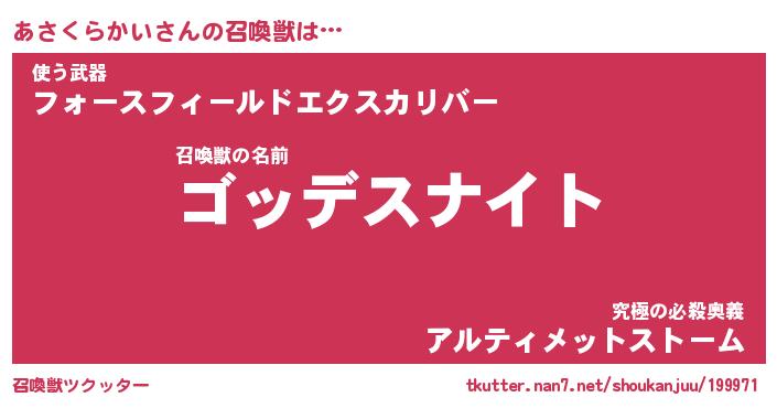 | 女子向けラノベタイトル風あだ名 | 『あさくらかい姫と円卓の騎士』 |