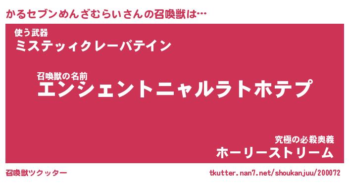 | 男性向けラノベタイトル風あだ名 | 『かるセブンめんざむらいの憂鬱』 |