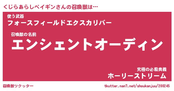 | ヒーロー風カッコイイあだ名 | 『スーパークジラアラシペイギン』 |