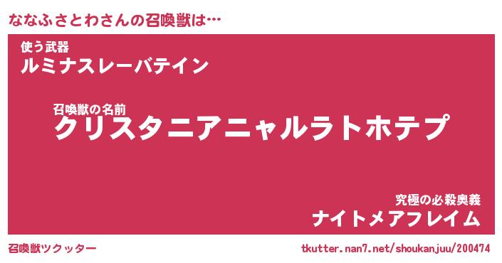 | 伝説のあだ名 | 『封印されしスナイパーななふさとわ』 |