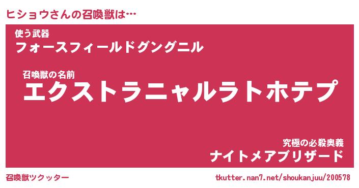| ファンタジー風あだ名 | 『ヒシフェル』『エターナルヒショウー』 |