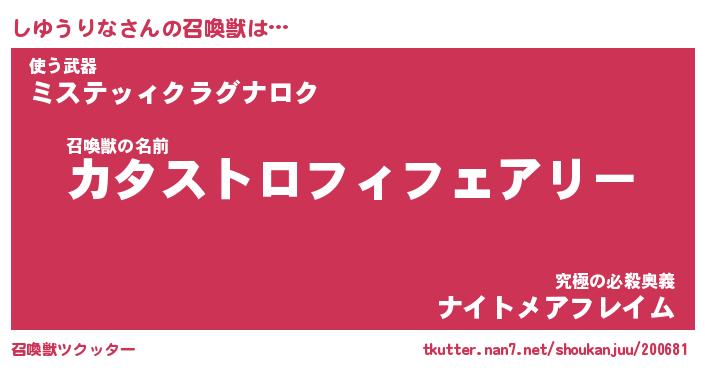 | ファンタジー風あだ名 | 『シユフェル』『エターナルシユウリナー』 |