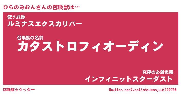 | 伝説のあだ名 | 『封印されしスナイパーひらのみおん』 |