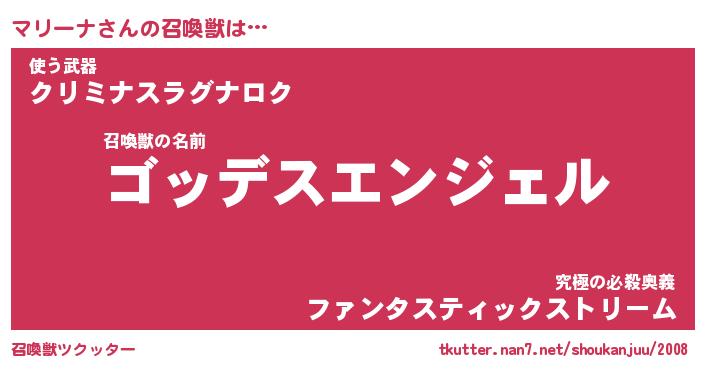 | 女子向けラノベタイトル風あだ名 | 『マリーナ姫と円卓の騎士』 |