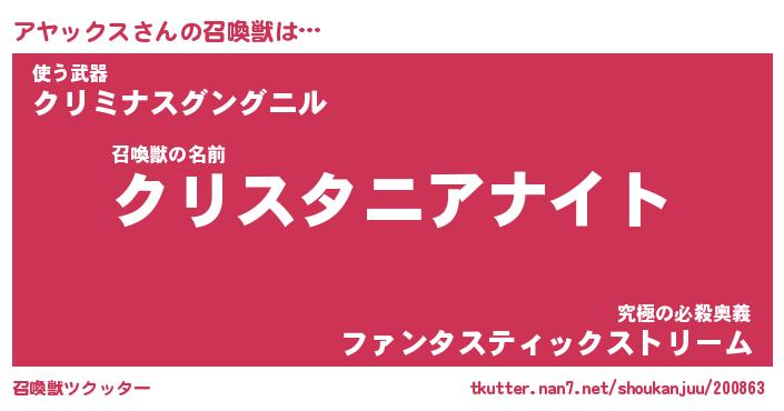 | ヒーロー風カッコイイあだ名 | 『スーパーアヤックス』『天弓騎士アヤ』 |