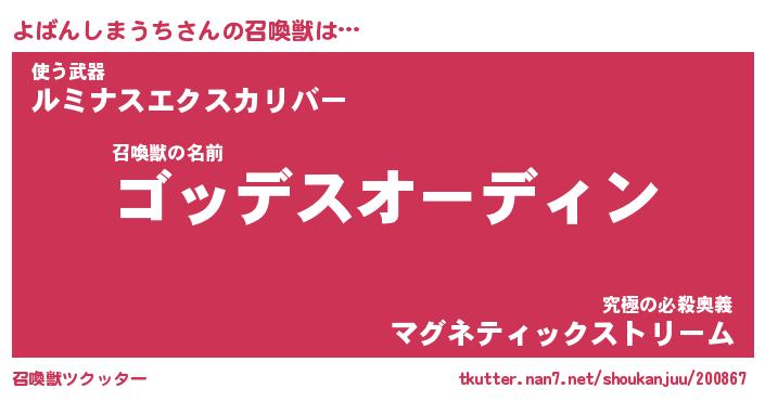 | 女子向けラノベタイトル風あだ名 | 『よばんしまうち姫と円卓の騎士』 |