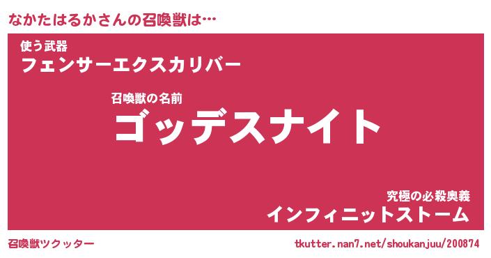 | 女子向けラノベタイトル風あだ名 | 『なかたはるか姫と円卓の騎士』 |