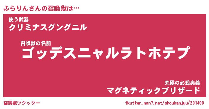 | 女子向けラノベタイトル風あだ名 | 『ふらりん姫と円卓の騎士』 |