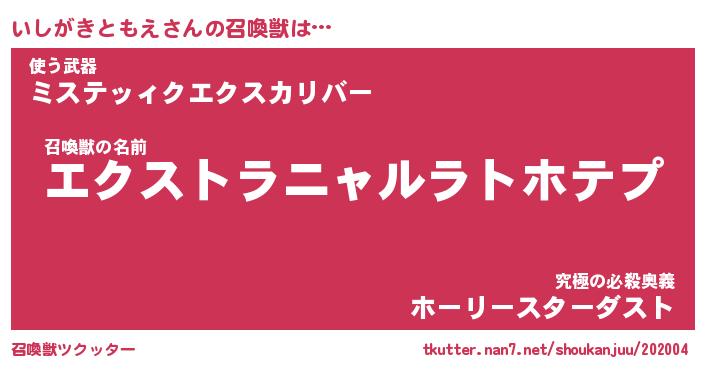 | 胡散臭い通販商品みたいなあだ名 | 『必ず成功する霊験あらたかなお札…その名も「いしがきともえ」』 |