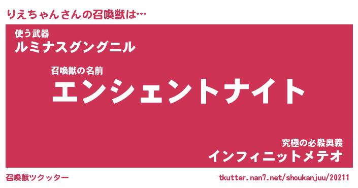 | ヒーロー風カッコイイあだ名 | 『スーパーリエチャン』『幻影騎士リエ』 |