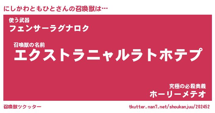 | 胡散臭い通販商品みたいなあだ名 | 『必ず成功する霊験あらたかなお札…その名も「にしかわともひと」』 |