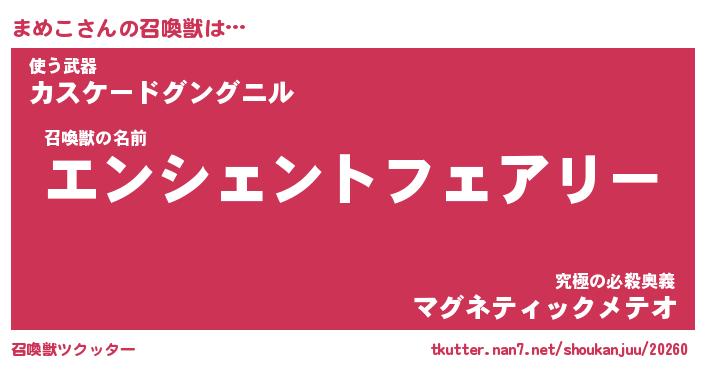 | ファンタジー風あだ名 | 『マメフェル』『エターナルマメコー』 |