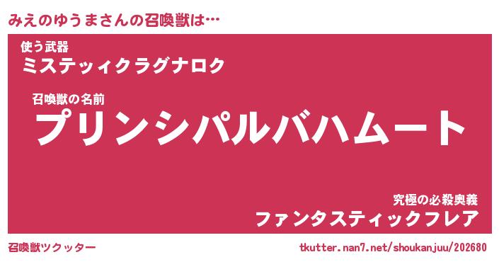 | ヒーロー風カッコイイあだ名 | 『スーパーミエノユウマ』『天弓騎士ミエ』 |