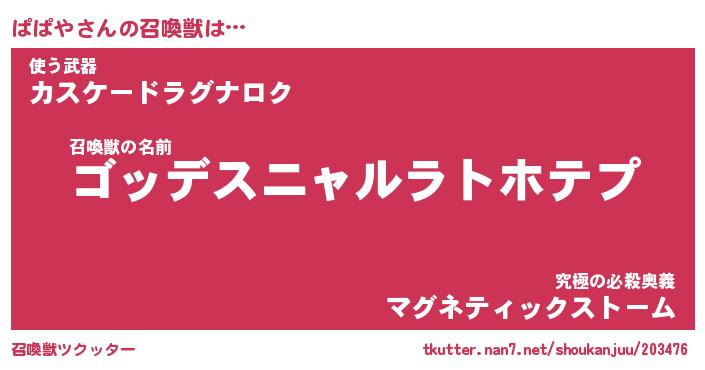 | 男性向けラノベタイトル風あだ名 | 『パパヤアートオンライン』 |