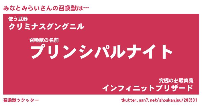 | ヒーロー風カッコイイあだ名 | 『スーパーミナトミライ』『銀牙騎士ミナ』 |