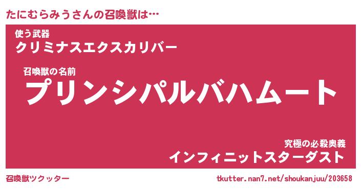| 女子向けラノベタイトル風あだ名 | 『たにむらみう姫と円卓の騎士』 |