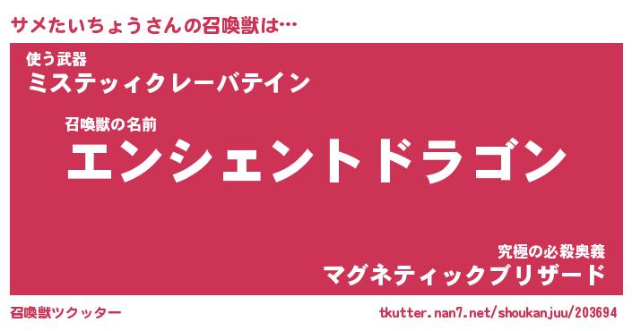 | ヒーロー風カッコイイあだ名 | 『スーパーサメタイチョウ』 |
