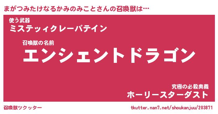 | ヒーロー風カッコイイあだ名 | 『スーパーマガツミタケナルカミノミコト』 |