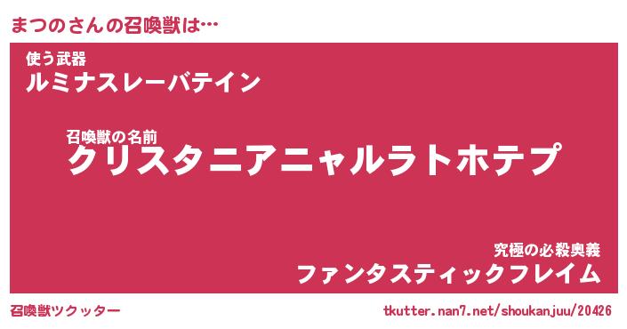 | ファンタジー風あだ名 | 『マツフェル』『エターナルマツノー』 |