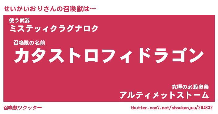 | 伝説のあだ名 | 『封印されし竜騎士せいかいおり』 |