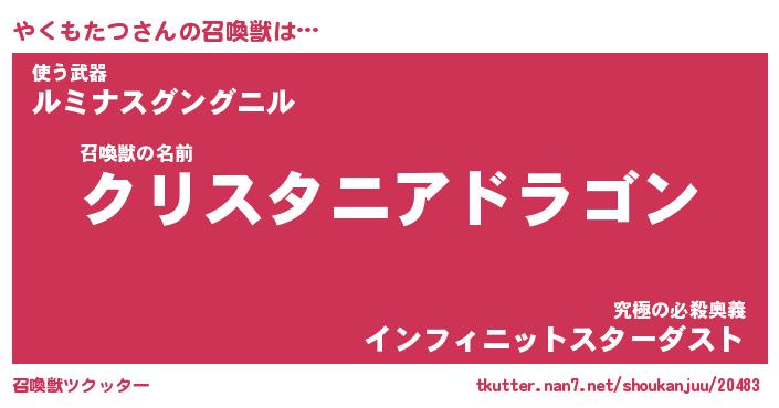 | ファンタジー風あだ名 | 『ヤクフェル』『エターナルヤクモタツー』 |