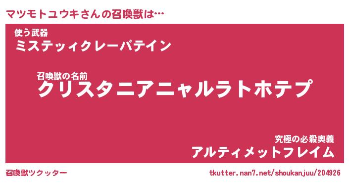| ヒーロー風カッコイイあだ名 | 『スーパーマツモトユウキ』 |