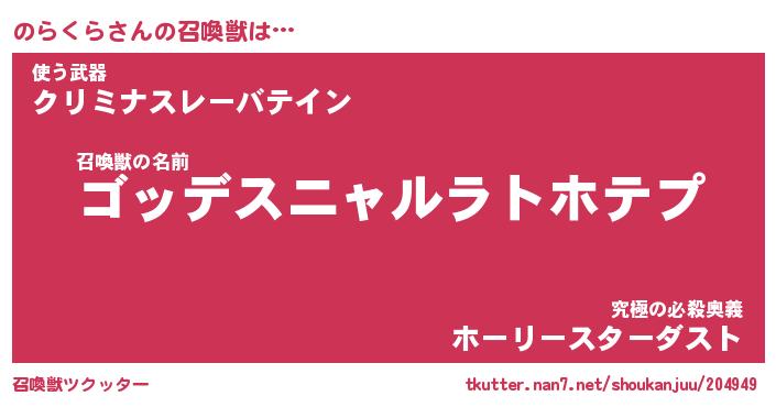 | 自動車の名前っぽいあだ名 | 『ノラティマ』『ノスラー』『デミノ』 |
