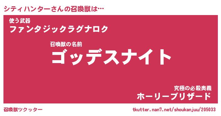 | 女子向けラノベタイトル風あだ名 | 『シティハンター姫と円卓の騎士』 |