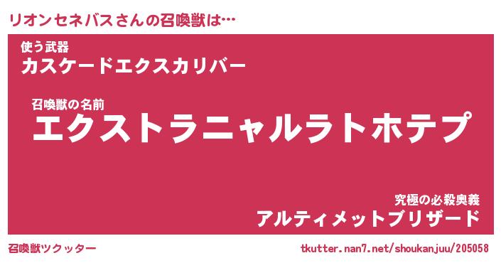 | 伝説のあだ名 | 『伝説のスナイパーリオンセネバス』 |