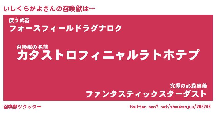 | ヒーロー風カッコイイあだ名 | 『スーパーイシクラカヨ』『天弓騎士イシ』 |