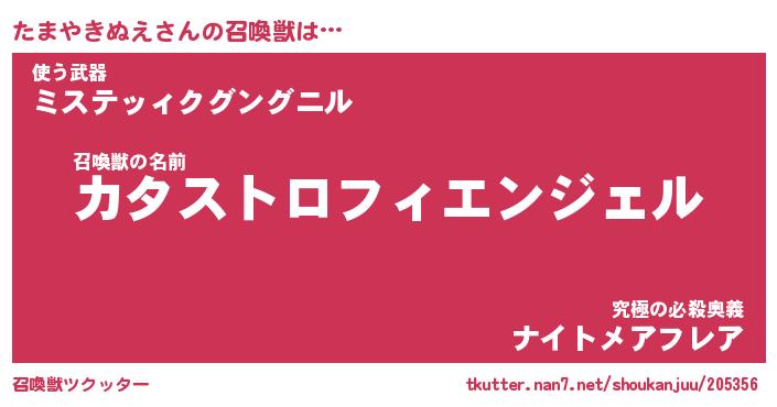 | 肩書あだ名 | 『たまやきぬえ店長』『たまやきぬえ団長』 |