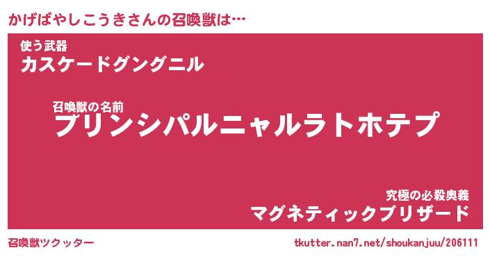 | ファンタジー風あだ名 | 『カゲフェル』『ファントムカゲス』 |