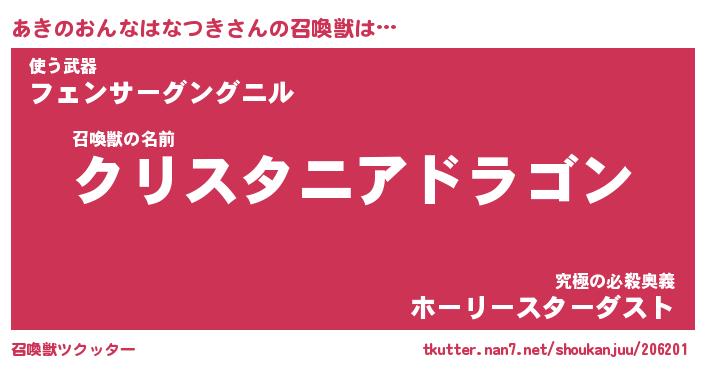 | 伝説のあだ名 | 『封印されし竜騎士あきのおんなはなつき』 |