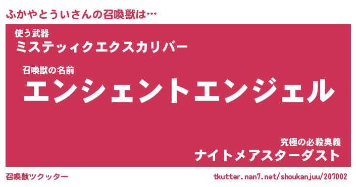 | ヒーロー風カッコイイあだ名 | 『スーパーフカヤトウイ』『魔戒騎士フカ』 |