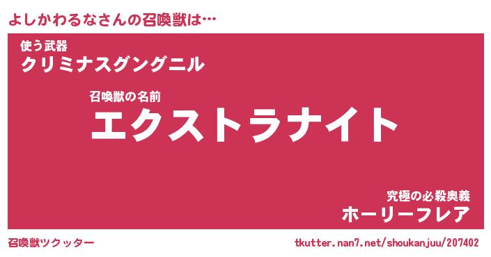 | ヒーロー風カッコイイあだ名 | 『スーパーヨシカワルナ』『黄金騎士ヨシ』 |
