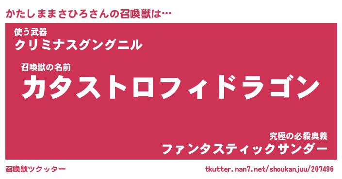 | 伝説のあだ名 | 『封印されし竜騎士かたしままさひろ』 |