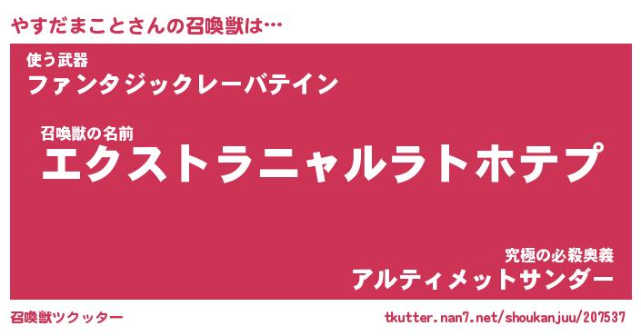 | 肩書あだ名 | 『やすだまこと御曹司』 |