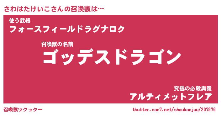 | 伝説のあだ名 | 『不死鳥の竜騎士さわはたけいこ』 |