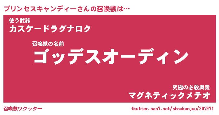 | 伝説のあだ名 | 『不死鳥のスナイパープリンセスキャンディー』 |