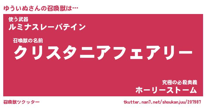 | 意味不明あだ名 | 『ペロリンゆういぬ』『永久保存ゆういぬ』 |
