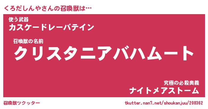 | 自動車の名前っぽいあだ名 | 『クロティマ』『ククア』『クント』 |