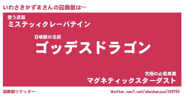 | 伝説のあだ名 | 『不死鳥の竜騎士いわさきかずま』 |