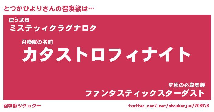 | ヒーロー風カッコイイあだ名 | 『スーパートツカヒヨリ』『魔戒騎士トツ』 |