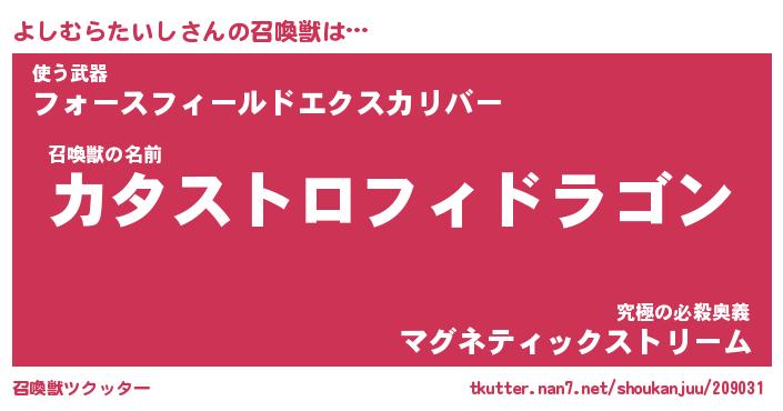 | 伝説のあだ名 | 『封印されし竜騎士よしむらたいし』 |