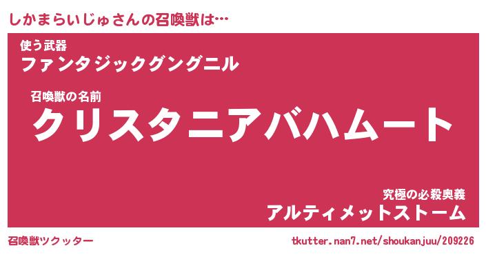 | 自動車の名前っぽいあだ名 | 『シカティマ』『シクア』『ヴィッシ』 |